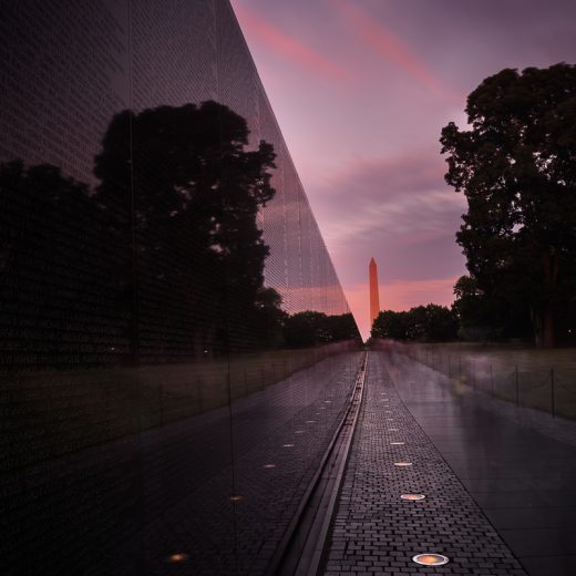 Sunrise at the Vietnam Memorial and Lincoln Memorial