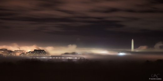 DC in a Fog February 18, 2013 by Navin Sarma Categories: Washington DCTags: Man and Nature, Night, Panorama, Portfolio, Slideshow, Washington DC, Washington Monument