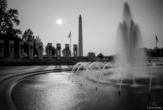 World War II Memorial Black and White Sunrise October 18, 2014 by Navin Sarma Categories: Washington DCTags: Black and White, Washington DC, Washington Monument, WWII Memorial